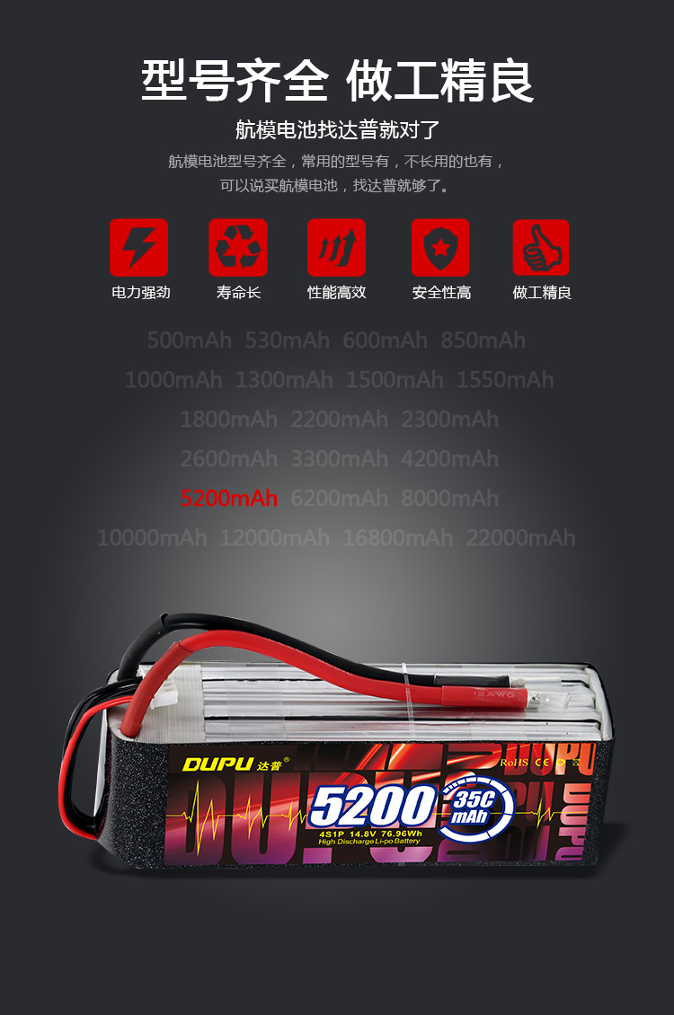 ​12S 6S 5S 4S 3S 5200mAh 80C 70C 60C 35C 44.4V 22.2V 14.8V 11.1V 可(kě)焊接指定插頭